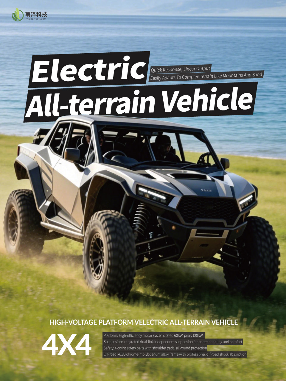 This high-voltage platform-based electricUTV delivers extended range, combiningrobust power, professional off-roadcapability, and premium ride comfort.